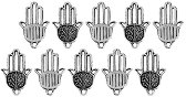 Металните висулки във формата на амулета за защита "Ръката на Фатима" са подходящи за изработването на различни видове бижута и декорации. С тях може да внесете нежен акцент в своите творения. За да направите красиви и интересни произведения на изкуството нанижете висулките на шнурчета, панделки, метални верижки или корди. Комплектът включва 10 броя висулки в сребрист цвят. Всяка от тях е с размери 15 / 22 / 1 mm, а размера на дупките им за закачане е 1.5 mm. ... |