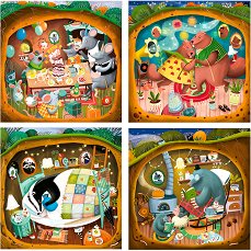 Децата ще се забавляват с пъзелите с животни от Educa. Комплектът включва 4 пъзела с нарастваща трудност - от 12, 16, 20 и 25 части. Подрастващите ще могат да подредят илюстрации на детски рожден ден, танц, четене на книги и сън, докато развиват своите сръчност, фина моторика, координация око-ръка, въображение и логика. Размерите на сглобените пъзели са 16 х 16 cm. ... |