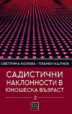 Монографията е трета част от изследване в юношеска възраст и представя връзката на садистичните наклонности и агресията. Книгата е предназначена за специалисти в областта на психологическата диагностика и оценка на развитието. Пламен Калчев е професор, доктор на психологическите науки. Светлина Колева е главен асистент, доктор по психология. Авторите са преподаватели в Софийския университет Св. Климент Охридски. ...