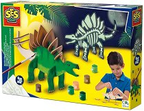 Комплектът от SES Creative се състои от дървени елементи, светещи в тъмното стикери, 6 цвята бои, четка, гъба и инструкции. С помощта на компонентите децата ще имат възможността да си сглобят 3D фигури на динозаври, които да оцветят с боите и да ги декорират със стикерите. Готовите модели ще светят в тъмното, като изобразяват скелет на динозавър. За работата с комплекта не се изисква лепило и ножица. ... |