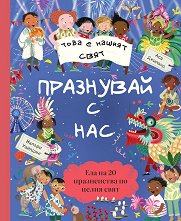 Ела на 20 празненства по целия свят. Запознайте се с двадесет деца от целия свят чрез техните разкази за празниците и фестивалите, които обичат и за религиите и обичаите, които почитат. Това е нашият свят. Празнувай с нас, написана от Валъри Уайлдинг и илюстрирана от Аса Джиланд, е продължение на високо оценената от критиците първа книга Това е нашият свят. Книгата представлява ярък и цветен празник на културното многообразие на нашата планета - незабравимо пътешествие, в което обичаите и религиите на хора от 20 места оживяват за малките читатели. Бъдни вечер, Коледа, Лунната нова година, Фестивалът в Рио и още и още! ... |