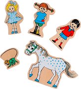 Дървеният комплект с фигурки от Micki Пипи и приятелите ѝ ще вдъхнови децата да създават собствени забавни истории и приключения. В него ще откриете пет красиво изработени дървени героя - Пипи, Томи, Аника, Кончето и господин Нилсон. Те са удобни за хващане от малки детски ръчички и подходящи за ролеви игри у дома или навън. С тези фигурки децата могат да пресъздават любими моменти от света на Пипи или да измислят свои нови сюжети. Играта насърчава въображението, социалните умения и координацията. Комплектът е чудесен избор за малчугани, които обичат да изследват света чрез творчество и игра. Пипи - най-силното ... |