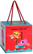 Комплект от картонена книга и цилиндрични кутийки, с които детето може да играе и учи. ... Едно, две, три... девет, десет и... морският фар се появи. С помощта на всички 10 картонени цилиндрични кутийки в комплекта детето може "да построи" кръгла кула, подобна на всеки морски фар, който сме виждали. Но за разлика от истинската крайбрежна постройка, тази има друга "мисия" - вместо да ориентира кораби, тя помага на малчугана да играе и учи. Включените картонени цилиндри са с различна големина, така че детето лесно да създаде стабилна кула. Всяка цилиндрична кутийка е и с различни картинки на животни, ... |