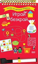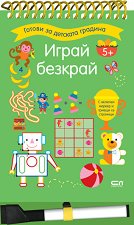 В тази невероятна книжка малките любознайковци ще могат да рисуват, да преминават през лабиринти, логически задачи, първи стъпки в смятането да решават загадки и да се забавляват, докато се обучават. Благодарение на включения маркер и специалните триещи се страници, всяко упражнение може да бъде повтаряно отново и отново. Страниците на книжката са захванати посредством спирала, което я прави много лесна за разгръщане и употреба. Поредицата Готови за детската градина на издателство СофтПрес е полезно и забавно помагало за натрупване на знания и развитие на важни умения в предучилищна възраст. ... |