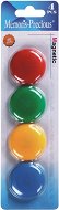 Комплектът съдържа 4 кръгли магнита с диаметър ∅ 40 mm в различни ярки цветове. Те са подходящи за закрепване на бележки, снимки и документи върху магнитни дъски, хладилници или метални повърхности. Магнитите осигуряват стабилно захващане и са практично решение за дома, офиса или училището. Цветният им дизайн придава свеж и подреден вид на всяко работно пространство. ... |