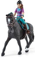 Комплектът е част от серията "Клуб по езда", където ще откриете още фигурки и аксесоари по темата. ... Комплектът от "Schleich" е подходящ за деца от 5 до 12-годишна възраст. Той се състои от прецизно изработени фигури на Лиса и нейният кон Буря, а също и 3 аксесоара - каска, седло и юлар. Фигурката на Лиса може да се разглобява, а освен това има подвижни крайници за максимално реалистична игра. Фигурките ще ви впечатлят със своята детайлност и прецизна изработка. Те ще бъдат чудесно допълнение към всяка колекция. Благодарение на своята здравина и издръжливост, спокойно могат да бъдат използвани и за ... |