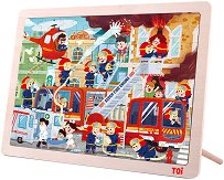 Пъзелът от Toi World се реди в дървена рамка на стойка. Той се състои от 100 стандартни части, с които детето ще си подреди картина, която да стои изправена на видно място в дома ви. ...