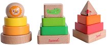 Комплектът от 4 образователни играчки за сортиране и нанизване е подходящ за деца над 18-месечна възраст. Състои се от низанка - тетрис, низанка - геометрични фигури, сортер с кръгли фигури и сортер - танграм. Всички компоненти са изработени от дърво, боядисано с безвредни бои на водна основа. С тяхна помощ детето ще развива своята координация, цветоусещане, знания по математика и концентрация. Всяка от основите е с размери 12.5 x 5 cm. ... |