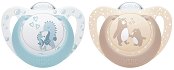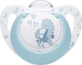 Залъгалките "Star" на "NUK" са произведени от пластмаса с биберон, който е направен от устойчив и разтеглив естествен каучук. Биберонът имитира гръдното зърно на майката по време на кърмене и пасва оптимално на устната кухина на детето, задоволявайки естествения смукателен рефлекс. Залъгалките са с ортодонтична форма и са оформени така, че да намалят напрежението върху венците и да предоставят здравословно развитие на устната кухина, небцето и зъбките на бебето. Те са подходящи за бебета на възраст от 6 до 18 месеца. Системата "Air System" осигурява възможността да се освободи въздуха от ... |
