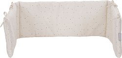 Обиколникът на BabyDan осигурява спокойствие на родителите, че бебето им е в безопасност по време на сън и игра в креватчето. Калъфът му е изработен от 100% памук, а пълнежът му е от 100% полиестер, който е безвреден за децата. Закрепването на обиколника за предпазните решетки на креватчето става бързо и лесно, посредством връзките с които разполага. По този начин обиколникът обгръща вътрешната страна на леглото, като предпазва бебето от евентуален удар в решетките. Обиколникът е с размери 35 / 160 / 2 cm и е подходящ за легло с вътрешни размери 60 x 120 cm. ... |