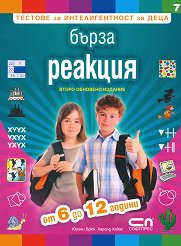 Тази книжка от поредицата "Тестове за интелигентност за деца" има за цел да тренира бързата реакция на децата между 6 и 12 години. ... Способността за бързо реагиране във всяка ситуация е изключително търсено качество в нашето забързано време. Подобно на други човешки способности, тя може отлично да се тренира в детска възраст. Бързата и адекватна реакция е високо ценена в училище и е задължителна в много професии. А в телевизионните викторини без нея не може. Пълноцветна, забавна и с определен игрови ефект, тази книжка предлага задачи с букви, числа, форми и фигури за трениране на бързите реакции на децата ... |