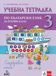 Тетрадка № 3 съдържа задачи и упражнения за усвояване на основните правила на правописа и особеностите на езиковите и речевите единици. Рубриката "За досетливите" е за ученици с изявени способности в областта на родния език. Учебната система по български език и литература за 1. клас се състои от: буквар учебна тетрадка № 1 по български език учебна тетрадка № 2 по български език учебна тетрадка № 3 по български език читанка учебна тетрадка по четене книга за учителя Изброените компоненти от учебната система се продават поотделно. За да закупите някой от тях, последвайте съответния ... |