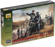 Мащабно умален сглобяем модел от пластмаса на немски военен мотор BMW R-12 и фигури на мотоциклетист и офицер. Брой части: 119 Дължина на модела: 6.5 cm За да може да сглобите и залепите този макет, ви е необходимо лепило. Елементите на модела са направени от едноцветна пластмаса. Моделът може да се оцвети с боички. За BMW R-12 BMW R-12 е стандартен мотор на немската армия, който се използва за доставка на храна и амуниции, разузнаване, бърза помощ и още много цели. Машината притежава 750-кубиков двигател с 18 конски сили и достига максимална скорост от 85 km/h. Мотоциклетът се произвежда от 1935 до 1942 г., като ... |