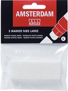 Резервните накрайници от Royal Talens се предлагат в компактна опаковка от 5 броя, за да са винаги под ръка в случаите, когато маркерът започне да се износва. Те са подходящи единствено за работа с акрилните маркери от серията Amsterdam. Имат двустранна правоъгълна форма с дебелина 15 mm - отговарят на размер L или най-широките маркери от гамата на Амстердам. Направени от слепени и импрегнирани степани полиестерни влакна, писците са доста твърди, но все пак се захабяват от натиска и грапавината на повърхности като платна за рисуване, дърво, камък, текстил и груби хартии. Когато върхът започне да се нищи и се ... |