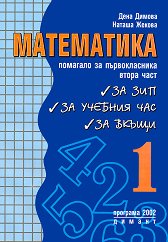 Помагало, в което в удобна за работа структура е организирано учебното съдържание по математика, предвидено за усвояване в първи клас от учебната програма и се създават условия за формиране на уменията, необходими за развитие на въображението, съобразителността, паметта и логическото мислене. Разнообразните по вид задачи, математическите игри и самостоятелните работи и подпомагат творческото прилагане на теоретичните знания на практика. ... |