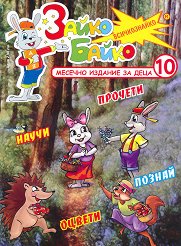 В месечното издание за деца: Прочети! Научи! Познай! Оцвети! ... Забавлявай се, докато научаваш любопитни факти, играеш весели игри и оцветяваш със Зайко Байко Всичкознайко! Във всеки брой от списанието ще откриеш интересни приказки, ще научаваш нови неща за природата и света, ще разрешаваш заплетени задачи и още много други. В този брой е включен и хартиен модел за изрязване "Поставка за моливи". За да оцветите тази книжка препоръчваме да използвате моливи или пастели, за да избегнете цветовете да се отбележат на другата страница. ... |