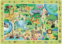Пъзелът от Goki е изработен от дърво, боядисано с безвредни бои на водна основа. Той съдържа 6 елемента с изобразени на тях различни животни от зоопарка. Всеки от тях разполага с дръжка, с която детето по-лесно да маха и поставя елементите на обозначените за тях места. При поставяне на фигурката на правилното за нея място, подложката издава съответния за животинчето звук. Пъзелът има за цел да развива детското цветоусещане и координация, докато го забавлява. Подложката е с размери 30 x 21 cm. Пъзелът работи с 2 батерии AAA, които можете да закупите отделно. ... |