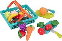 Комплектът от "Battat" се състои от пазарска кошница, 2 ножа, 2 дъски за рязане и различни видове плодове и зеленчуци. Продуктите са съставени от две части, които се съединяват с велкро лента. Кошницата е снабдена с две дръжки, които я правят удобна за носене в ръка. Така децата ще могат не само да пресъздадат пазаруване в магазин, но и да се превърнат в истински домакини и готвачи в кухнята. ...