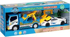 Камиончето ще зарадва всеки малчугани, който харесва големите превозни средства. Той е тип репатрак за пътна помощ и е подходящ за деца над 3-годишна възраст. Освен репатрак, в комплекта ще откриете допълнителна платформа с колелца и количка, за максимално реалистична игра. Камионът има подвижни елементи и ще може да вдига и сваля количката посредством въртене на манивела, да върти своя кран и има въртящи се гуми, които му позволяват да се движи напред и назад. Елементите са изработени от здрава пластмаса за по-дълъг експлоатационен период. Количката е с дължина 18 cm, а камиончето - 22 cm. ... |