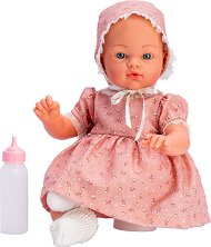 Куклата бебе Мария от "Asi" е с височина 43 cm. За направата ѝ е вложен ръчен труд, като са използвани нетоксични материали с най-високо качество. За тялото на бебето е използван приятен на допир винил. Куклата ще ви впечатли с изключително изразителните и пленителни черти, които я правят съвършена, почти като истинско бебе. Производителят на куклата е положил много усилия и в създаването на тоалет за куклата бебе, така че той да отговаря на Мария, която сама по себе си е съвършена. Тя е облечена в бяла рокличка на райета и цветчета, а на главата си има шапка в тон с роклята, която се завързва посредством ... |