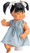 Запознайте се с куклата Чени от Asi. Тя е облечена със синя рокля на звездички и носи със себе си много усмивки и игри. Чени има черна, мека и копринена коса, вързана на две опашки със сатенени панделки - готова е за прически и забавления. Тялото ѝ е изцяло гумено приятно на допир, безопасно и много здраво, изработено от висококачествен винил. Ръцете, краката и главата ѝ се движат - така детето може да я преоблича и слага в различни пози. Дрешките ѝ се свалят и може да се сменят с други от колекцията на Asi. Това значи още повече възможности за ролеви игри и забавления. Куклата бебе Чени е с височина ... |