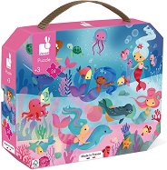 Потопете се в приказния подводен свят с красивия картонен пъзел от Janod. Този очарователен пъзел от 24 части разкрива магична морска сцена с русалки и техните приятели от океана – делфини, рибки, морски костенурки и други обитатели на морското дъно. Пъзелът е създаден специално за деца, като по забавен начин подпомага развитието на паметта, концентрацията и фината моторика. Докато подреждат цветната подводна картина, децата упражняват логическото си мислене и координацията между ръцете и очите. Комплектът е опакован в удобно куфарче с текстилна дръжка, което позволява лесно съхранение и пренасяне. Това го прави идеален ...