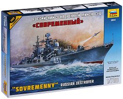 Умален модел на руският ескадрен миноносец - "Sovremenny" от производителя "Zvezda". Дължина на модела 23 cm. Мащаб на модела: 1:700. За да може да сглобите и залепите този макет, ви е необходимо лепило. Елементите на модела са направени от едноцветна пластмаса. Моделът може да се оцвети с боички. За Sovremenny "Sovremenny" е първия кораб от проекта 956, спуснат на вода 18 ноември 1978 година. Предназначен е да оказва огнева поддръжка на десанти, противоракетна, противокатерна и противолодъчна отбрана на военни и транспортни кораби, унищожаване на надводни кораби, катери и десантни ...