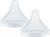 Силиконовите биберони от серията "Natural Feeling" на "Chicco", които са предназначени за бебета от 6+ месеца са създадени с напълно нова технология, произведени от изключително устойчив, мек и нежен силикон. Те са с по-малка основа и издължена форма, която гарантира по-добро позициониране на устните и спомага за по-добри смукателни движения. Подходящи са за по-големи бебета, а заоблената основа и релефните рингове позволяват на бебето да суче по естествен начин. Специалните еластични сектори увеличават мекотата и гъвкавостта на биберона, наподобяват и имитират мекотата и естествената гъвкавост на ... |