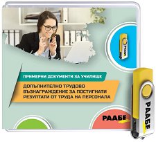 Над 90 примерни документа - планове, програми, анкети, правила и други, съобразени с изискванията на нормативната уредба, с необходимите реквизити и нормативни основания. USB Допълнително трудово възнаграждение за постигнати резултати съдържа над 90 примерни документа, необходими за успешното определяне на допълнителното трудово възнаграждение за постигнати резултати от труда на персонала в училищата. Изданието съдържа: процедура за провеждане на оценяването; варианти на карти за оценка с точки за оценяване на персонала, разпределени по длъжности; показатели и примерни критерии за оценка на труда; таблици за ... |