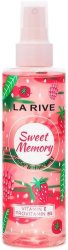 Отдайте се на сладкия аромат на парфюмния спрей Sweet Memory от La Rive. Формулата му е обогатена витамин Е и провитамин В5, които осигурява хидратация и грижа както за тялото, така и за косата. Ароматната композиция се разкрива с върхови нотки черна череша и боровинки. Продължава със сърце от сливов цвят и жасмин. Базата от захар, ванилия и карамел придава сладък завършек на аромата. ... |