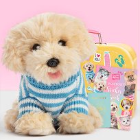 Вашето дете ще се забавлява с комплекта от Studio Pets. Той включва картонен куфар, паспорт, книжка със стикери и лабрадудела Драскулка. Кучето има плетен син пуловер на райета. Меко е на допир и е подходящо за гушкане. Изработено е от висококачествен акрил и има знак за качество CE. Височината на Драскулка е 23 cm. Книжката има 31 страници като със стикерите могат да се декорират куфара и паспорта. Малчуганите ще разиграват ролеви игри с лабрадудела като го разхождат или галят. Дайте шанс на подрастващите да развият своето въображение, фина моторика, сръчност и социално-емоционални умения. Размерите на куфара са 27 / ...