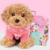 Малчуганът ще се забавлява с комплекта от Studio Pets. Той включва куче, картонен куфар, паспорт за домашен любимец и книжка с цветни стикери. Бисквитка е изработена от висококачествен акрил и има знак за качество CE. Мека е на допир и е подходяща за гушкане. Пуделът е облечен в плетен розов пуловер, декориран със сърца. Книжката има 31 страници като със стикерите могат да се декорират куфара и паспорта. Децата ще разиграват ролеви игри с Бисквитка като я разхождат или галят. Тя е с височина 23 cm. Дайте шанс на подрастващите да развият своето въображение, фина моторика, сръчност и социално-емоционални умения. Размерите ...