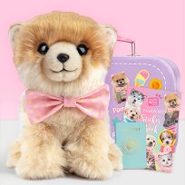 Малкият човек ще се забавлява с комплекта на Studio Pets. Той се състои от картонен куфар, паспорт, книжка със стикери и кученце. Померанът е мек е на допир и е подходящ за гушкане. Има розова папионка, декорирана с жълти точици. Изработен е от висококачествен акрил и има знак за качество CE. Височината на Помпон е 23 cm. Книжката има 31 страници като със стикерите могат да се декорират куфара и паспорта. Децата ще разиграват ролеви игри с кучето като разхождат или галят. Могат да го използват и като аксесоар за детската стая. Дайте шанс на малчуганите да развият своето въображение, социално-емоционални умения, сетивност, ...