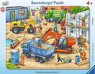 Детският пъзел от "Ravensburger" е на тема "Големи строителни машини" и съдържа 40 елемента. Всеки елемент има точно определено място, на което малчуганът трябва да го постави на картонената подложка. Размерите на пъзела са 38 x 30 cm. ...