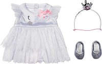 Тоалетът е част от серията Baby Born, където ще намерите още интересни комплекти. ... С този комплект за кукли с височна 43 cm от Zapf Creation всяка игра се превръща в сценично изживяване. Бялата рокля с блестящи детайли е украсена с бродерия на лебед върху горната част и малка панделка, а ефирната тюлена пола и ръкавките с къдрички придават лекота и грация. Комплектът включва сребристи балетни обувки и диадема с коронка, които завършват визията. Обличането и събличането е лесно, дори за най-малките ръчички, а висококачествената изработка осигурява дълги часове игра. Тоалетът е подходящ за балетни представления, танци ... |