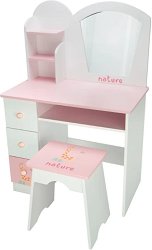 Създайте за своето малко момиченце магически свят за игра с дървената тоалетка от Arias. Този очарователен комплект в нежно розово и бяло е създаден, за да вдъхновява въображението и да превръща всеки ден в приказно приключение, изпълнено с ролеви игри и красиви детски мечти. Тоалетката Nature впечатлява със своя стилен и изчистен дизайн. Разполага с огледало, удобни рафтове и три чекмеджета, в които малките принцеси могат да подреждат своите любими аксесоари – ластичета, четки, гребени и всички малки съкровища от света на детството. Комплектът включва и удобно столче, съобразено с височината на децата. Меките розово- ...