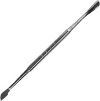 От SNB ви предлагат инструмент за избутване и изрязване на кожички. Той е изработен от неръждаема стомана. Дългата му дръжка позволява удобен захват по време на употреба. Тънкият край е предназначен за изрязването на кожички, докато широкият е подходящ за тяхното избутване. Инструментът е с дължина 15 cm. Благодарение на материала от който е изработен, той е подходящ и за професионална употреба в салони. ... |