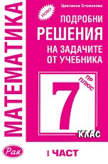 Помагалото съдържа подробно решени всички задачи от учебника Математика за 7. клас - част 1 на издателство Просвета Плюс с авторски колектив Юлия Нинова, Снежинка Матакиева, Николай Райков, Тинка Бонина-Христова, а именно от стр. 8 задача 2 до стр. 167 задача 9. То е незаменим помощник на учениците от 7. клас в самостоятелната им подготовка у дома. Има решения на достатъчен брой задачи за упражнение, за покачване нивото на знанията по математика и за отлично представяне на учениците в клас и на изпита за Национално външно оценяване след 7. клас. Помагалото е ценен помощник и на учителя по математика в класно- ... |