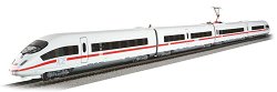 Мащабно умален модел на свръхскоростен влак от мрежата на Inter City Express. Дължина на влака: 59.3 cm Размери на сглобеното трасе: 110 x 88 cm Необходимо място за сглобяване на трасето: 120 x 98 cm Характеристики на комплекта: умален размер на трикомпонентна мотриса захранване - прав ток (DC) интерфейс - цифров декодер - NEM 652 с конектор минимален радиус на завиване - 422 mm влакът е съвместим с всички релси в мащаб 1:87 на фирма Piko овална писта отделен контролер за скоростта За Inter City Express Intercity-Express (позната и изписвана още като InterCityExpress и Inter City Express в Австрия, ... |