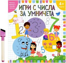 Книжка с игри за формите и числата, които ще развият наблюдателност и логическо мислене при децата. Към книжката е включен изтриващ се флумастер, написаното се изтрива лесно от страниците на книжката с накрайника на капачката. Умничетата ще запознаят децата с много игри за: форми и числа; логически игри; игри за последователности; лабиринти, пъзели, игри за групиране; игри за концентрация и наблюдателност. Илюстратор: Теодора Станиславова. Книжката е част от поредицата Книжки с изтриващи се страници на издателство Дивертино. ... |