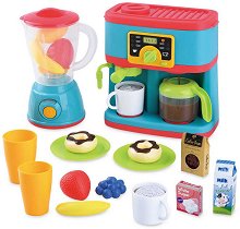 Комплектът от PlayGo ще се хареса на всеки малчуган. Той се състои от кафемашина, блендер, 2 чинийки, 2 чашки за сок, 1 чаша за кафе, понички, мляко, захар, кафени зърна, ягода, боровинки, банан и други. С комплекта детето ще може да разиграе различни истории, като дори да влезе в ролята на готвач. ... |