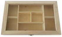 Дървената кутия от KPC е изработена от от нелакирано буково дърво. Разполага с 8 отделения, капак с пантички и метална закопчалка. Подходяща е за подредба и съхранение на бижута и аксесоари, шивашки принадлежности, мъниста и спомени, подправки, пакетчета чай и други дребни предмети. Дървената кутия може да се декорира с различни техники и материали като декупаж, напукваща и мраморираща, мозайка, позлатяване, изгаряне с пирограф. Да се оцвети с акрилни бои и маркери за плътно покритие, туш и боя за стъкло за прозрачен слой, подчертаващ шарките на дървото. Не забравяйте, какъвто и метод за декориране да ... |