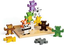 Пъзелът от "Tooky Toy" е изработен от дърво и боядисан с безвредни бои на водна основа. Той ще запознае малчуганите с дивите животни. Комплектът се състои от основа за редене и 9 пъзелови елемента с форма на различни животинки, измежду които - жираф, маймунка, катерица и други. Всеки елемент е с удобно за хващане пинче и пасва на точно определено място върху подложката. Пъзелът ще развива детската координация и усещане за цветове, докато го забавлява. ... |