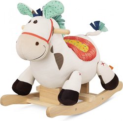 Играчката е част от серията B Toys, където ще откриете още комплекти. ... Люлеещият се кон от Battat е класическа и уютна играчка, която превръща всяка детска стая в сцена за въображаеми приключения. Със своето меко плюшено тяло, приятна на допир текстура и усмихнато изражение, Spotty приканва детето да се качи и да се впусне в галоп през Дивия запад, цветни поляни или родео арени. Играчката е снабдена със стабилни дръжки и люлееща се основа от естествена твърда дървесина, които осигуряват сигурност и класическо люлеещо усещане. Освен че носи радост, люлеещият се кон подпомага физическото развитие на детето, като ... |
