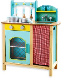 Да измислят въображаем ресторант, в който да готвят и да сервират на куклите си или да приготвят вечеря докато играят на семейство. Това са две различни идеи, които лесно могат да се родят в детския ум, но и при двете най-важно е едно нещо - те се реализират най-лесно с кухня за игра, която е напълно безопасна за децата и е съобразена с техните нужди. За това от "Andreu Toys" са изработили детска кухня от дърво, която има ретро визия и е оцветена в наситени цветове, които да се харесат на децата. Кухнята разполага с печка, котлони и мивка, която може да се откача лесно, за по-удобно почистване на играчката. ... |