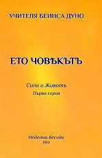 Настоящото издание е първото нефототипно издание по книгата Ето човекътъ. Книгата е първият том от поредицата Сила и Живот. Това са Неделни беседи, държани пред широка публика от началото на 1914 година от Учителя Петър Дънов (с духовно име Беинса Дуно). Издателство Пилгрим БГ се придържа стриктно в издаването по точен оригинал на словото на Учителят Петър Дънов (Беинса Дуно) без никакво изменение и осъвременяване, с пояснения на някои остарели и редки думи под линия. Именно тази поредица и по-точно нейните от първи до пети том, са книгите, които лично Учителят Петър Дънов е препоръчвал, когато са го запитвали: & ... |