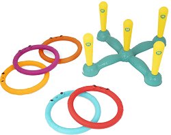 Ако търсите интересно забавление за вашето дете подходящо за двора или апартамента, то комплектът за игра с рингове от "Battat" е точно за вас. Основата, ринговете и колчетата са изработени от пластмаса. Играта е подходяща за деца над 3-годишна възраст и в нея могат да участват до 4 -ма играчи. Целта на играта е ринговете да се хвърлят и да се уцели някое от колчетата. ... |