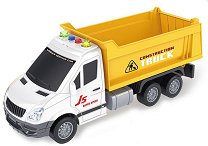 Подарете на детето си вълнуващи строителни приключения с този детски камион! Той ще впечатли всеки малък почитател на превозните средства и строителните машини, като предложи разнообразни възможности за игра. Камионът разполага с подвижна каросерия, която може да се повдига и отваря в задната част, за да изсипва товара – точно като истински самосвал. За още по-реалистично изживяване, при натискане на червения и синия бутон в предната част се активират светлинни и звукови ефекти. Играчката е оборудвана и с пул-бек механизъм – просто издърпайте камиона назад и го пуснете, за да се задвижи сам напред. Размерите на камиона ... |