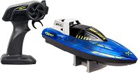 Лодката от Dickie е с атрактивен дизайн и е подходящ за деца над 6-годишна възраст. Тя е предназначена за игра във вода и идва в комплект с дистанционно, чрез което може да бъде управлявана. Контролерът е двуканален с честота 2.4 GHz, а максималният му обхват е до 15 m. Скоростта, която лодката може да развива е 2 km/h. Тя е изработена със специален, вграден механизъм, който изключва витлото, ако превозното средство не е поставено във вода. Освен това лодката има функция за дренаж на водата, както и активиране на турбо скорост. Лодката работи с 3, а дистанционното с 2 батерии AA 1.5V, които са включени в комплекта с ... |