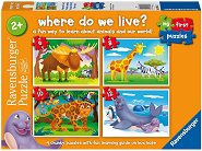 Децата ще се зарадват на пъзелите от Ravensburger. Комплектът включва 4 пъзела от 6, 8, 10 и 12 части. Малчуганите ще се запознаят с различните животни и ще разберат къде живеят те. Сглобяването на пъзелите спомага за подобряването на координацията око-ръка и въображението. Размерите на пъзелите са 21 x 15 cm. ...